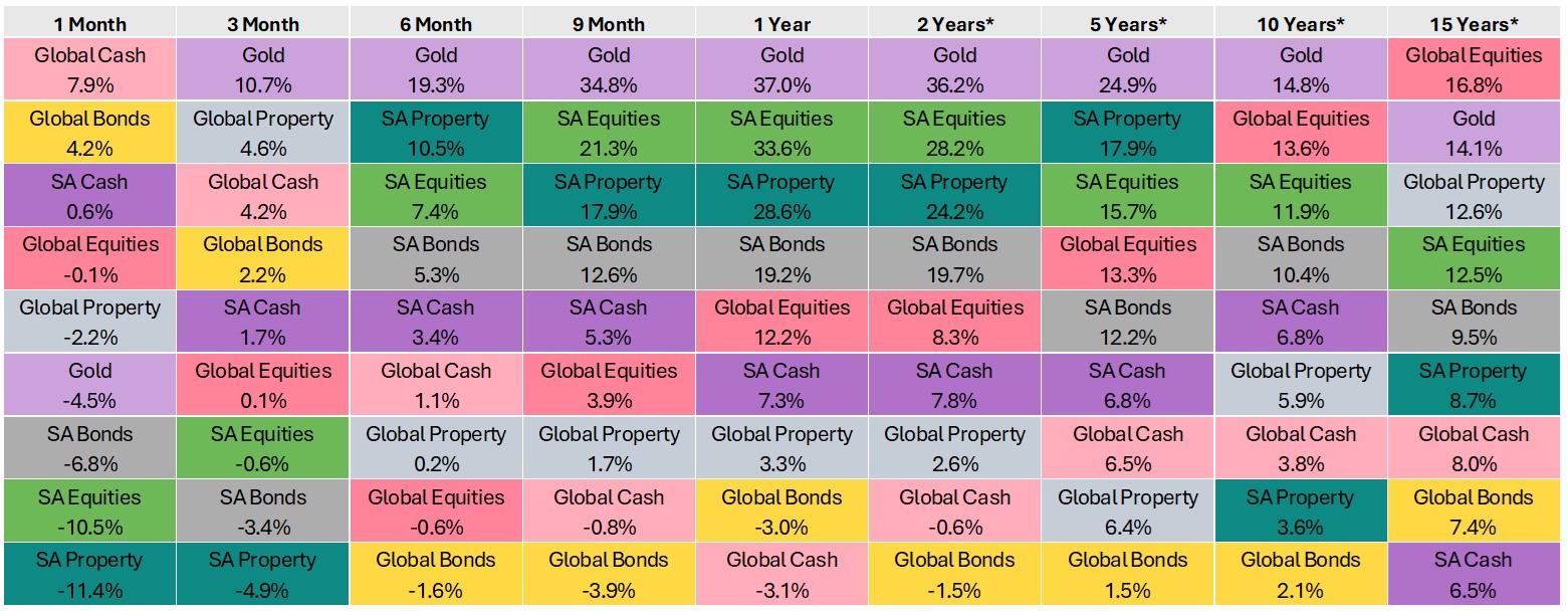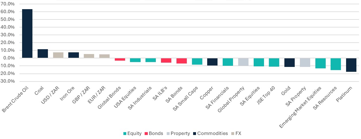 - SA Nominal Bonds (down 6.8%) had a shocking month, and Inflation-Linked Bonds (down 5.9%) dipped lower.
